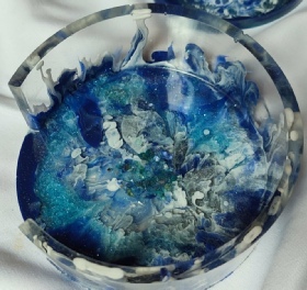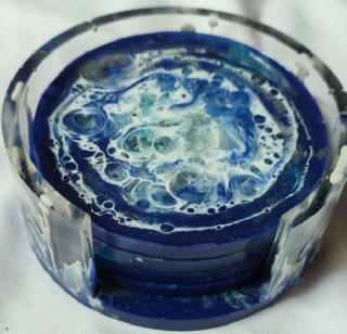There are numerous resin designs available and you can have whichever design you choose on the Coasters and the Coaster Holder.